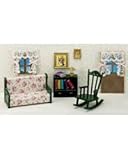 This is a decent, rather plain, living room set for your Calico Critters. The set includes a couch, rocking chair, bookcase, and accessories, all sized for your Critter families.