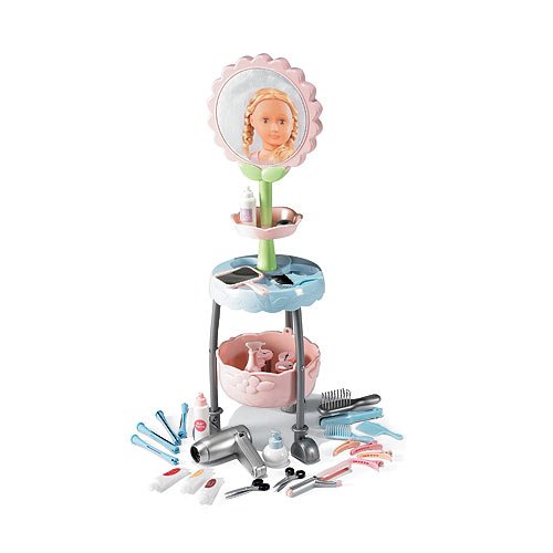 This item is supposed to be for Our Generation/American Girl type dolls... It is WAY too small and made of a very very cheap plastic... The pieces are so small they look like Barbie doll pieces. I returned this item IMMEDIATELY after receiving it..